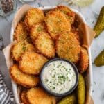 8. Serve: Serve the fried pickles warm with ranch dressing or your favorite dipping sauce for a delicious appetizer or snack.