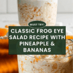 Frog Eye Salad is a unique and refreshing fruit salad featuring acini di pepe noodles coated in a rich, tangy pineapple custard base, combined with tropical fruits, coconut, and fluffy whipped cream. This sweet and creamy dessert salad is perfect for potlucks, family gatherings, or any occasion where a light, fruity treat is desired.