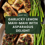 This Garlicky Lemon Mahi-Mahi is a fresh and flavorful dish that’s perfect for a weeknight dinner. Tender mahi-mahi fillets are seared to golden perfection and served with vibrant asparagus and a zesty lemon garlic sauce. It’s simple to prepare but impressive on the plate.
