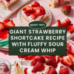 This Giant Strawberry Shortcake is a delightful dessert featuring a tender, buttery shortcake base topped with fresh, juicy strawberries and a luscious sour cream whipped topping. Perfectly balanced with a hint of vanilla and a sparkling sugar crust, this recipe delivers a classic treat with a giant twist that’s ideal for gatherings or special occasions.