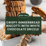 Gingerbread Biscotti combine the warm, spicy flavors of gingerbread with a satisfying crunch perfect for dipping in coffee or tea. These twice-baked treats are enhanced with mini diced ginger and finished with a drizzle of white chocolate for an irresistible holiday snack.
