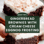 Keywords: gingerbread brownies, eggnog frosting, holiday dessert, Christmas brownies, spiced brownies, cream cheese frosting