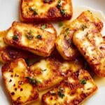 Keywords: halloumi recipe, fried halloumi, honey and thyme, quick appetizer, Mediterranean cheese recipe, pan-fried halloumi