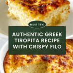 - Step 12: Bake in the preheated oven for 30–35 minutes, until the tiropita is golden brown and crispy.