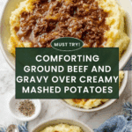 This comforting Ground Beef and Gravy Over Mashed Potatoes recipe delivers a hearty and satisfying meal featuring creamy, flavorful mashed potatoes topped with a rich beef gravy. Perfect for cozy dinners, this dish combines tender ground beef simmered in a savory onion and beef broth gravy, served over buttery garlic-infused mashed potatoes.
