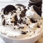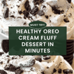 This Healthy Oreo Cream Fluff is a deliciously light and creamy dessert made with low-fat Cool Whip, nonfat Greek yogurt, vanilla protein powder, and crushed Oreo Thins. It’s lightly sweetened with a natural stevia sweetener and sugar-free vanilla pudding mix, making it a healthier alternative to traditional Oreo cream desserts. Perfectly chilled and topped with optional crushed Oreos, this fluff is excellent served on its own or paired with fresh fruit for a guilt-free treat.