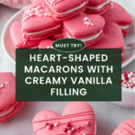 Heart macarons are delicate French cookies that bring a charming touch to any celebration. With a crisp shell and smooth vanilla buttercream filling, these treats are as delightful to make as they are to eat.