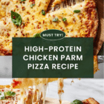 This High-Protein Chicken Parm Pizza is a delicious twist on traditional pizza, featuring a ground chicken crust packed with Parmesan and Italian seasonings. Baked to golden perfection and topped with marinara sauce, melty mozzarella, and a sprinkle of fresh basil and red pepper flakes, it’s a low-carb, protein-rich meal perfect for pizza lovers seeking a healthier alternative.