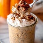 - Garnish and Serve: In the morning, give the oats a good stir. Top with chopped pecans and/or a dollop of whipped cream if desired. Serve chilled and enjoy your nutrient-packed autumn breakfast.