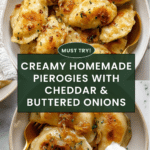 This Homemade Pierogies recipe features tender dough filled with creamy mashed potatoes and sharp cheddar cheese, perfectly boiled and then sautéed with buttery caramelized onions. A comforting Eastern European classic that’s ideal for family meals or special occasions.