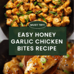 Honey Garlic Chicken Bites are a quick and flavorful dish perfect for busy weeknights. Tender chicken pieces are seared to golden perfection and coated in a sweet and savory honey garlic sauce. This recipe is simple, delicious, and sure to become a family favorite.
