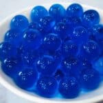 Store the popping boba in the calcium lactate solution in the refrigerator for up to 2 days. Consume fresh for the best texture and pop sensation. Reheat is not recommended as it can cause the spheres to break down.