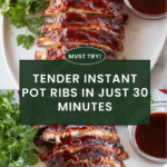Keywords: Instant Pot ribs, pork ribs pressure cooker, BBQ ribs recipe, quick ribs, tender ribs, barbecue sauce ribs