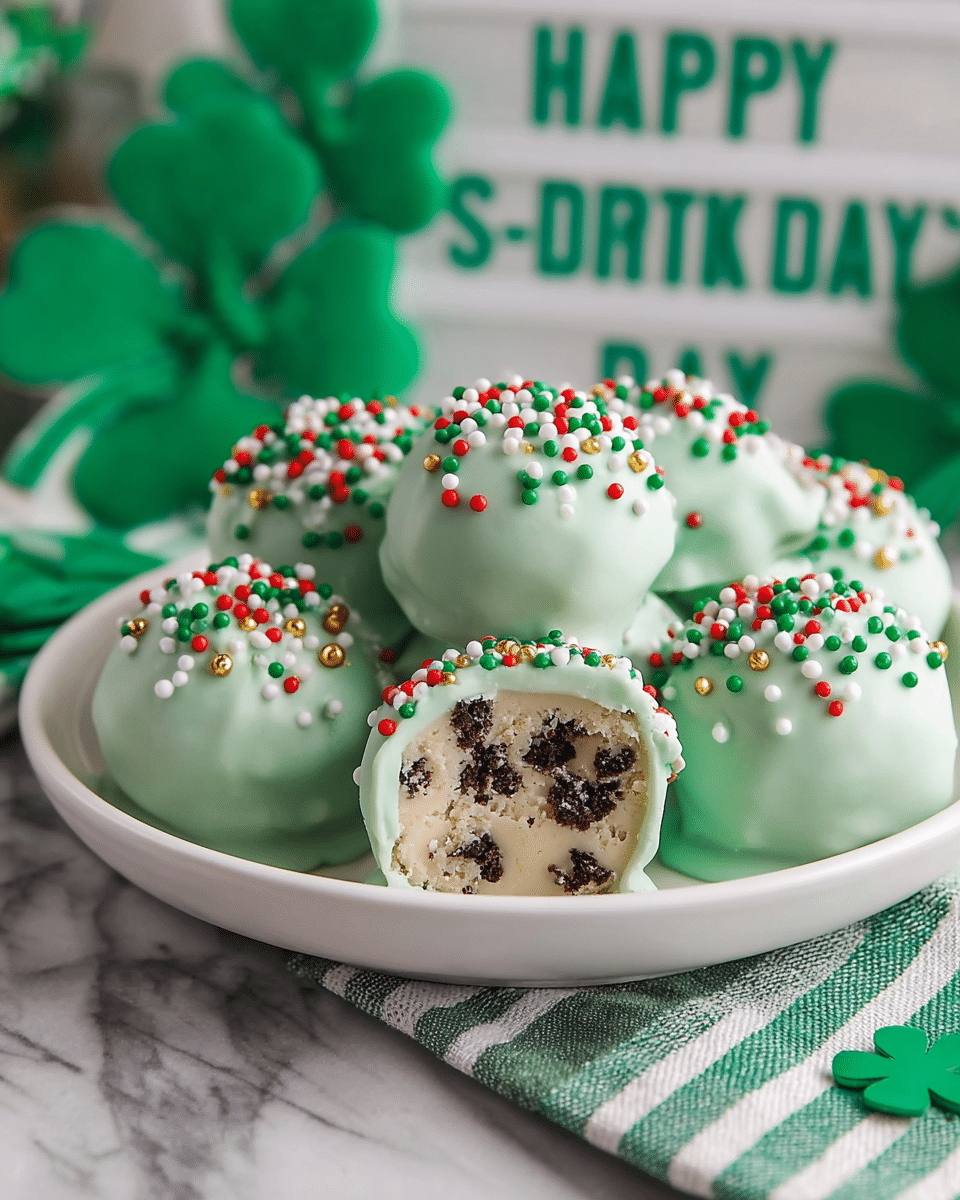 Keywords: Irish cream, Oreo truffles, no-bake dessert, St. Patrick’s Day dessert, candy melts, cream cheese truffles