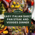 Keywords: Italian steak recipe, sheet pan dinner, roasted vegetables, sirloin steak, quick weeknight meal