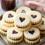 Classic Linzer Cookies feature a buttery, tender almond-flavored dough sandwiched with your favorite jam and dusted with powdered sugar. These delicate cookies with their signature cut-out tops are perfect for holidays or any special occasion.