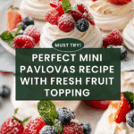 Mini Pavlovas are delightful individual meringue nests topped with whipped cream and fresh fruit. Light, crispy on the outside, and soft inside, they make a perfect elegant dessert for any occasion.