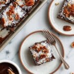 This decadent Mississippi Mud Cake is a rich, chocolatey dessert featuring a moist cocoa-infused cake layered with a gooey marshmallow spread and topped with a silky chocolate ganache, toasted pecans, and optional toasted coconut. Perfect for chocolate lovers craving a luscious, indulgent treat that combines textures and deep flavors in every bite.