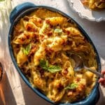 This cozy Mix and Bake Pumpkin Gouda Shells recipe combines jumbo pasta shells with a rich, creamy pumpkin sauce infused with shallots, garlic, thyme, and nutmeg. Topped with a delightful blend of mozzarella, parmesan, and Gouda cheeses, and optionally crispy prosciutto, this baked pasta dish is perfect for autumn or any comfort food craving.