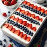 - Decorate: Garnish the top generously with the reserved strawberry slices and blueberries to make the dessert visually appealing.