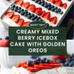This Mixed Berry Icebox Cake is a delightful no-bake dessert featuring layers of creamy cheesecake-flavored pudding, golden Oreos, and fresh mixed berries. Light, refreshing, and easy to assemble, it’s perfect for summertime gatherings or a quick sweet treat that requires minimal effort.