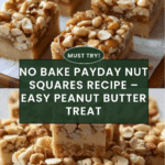 No Bake Payday Nut Squares are a deliciously easy treat featuring layers of salted peanuts coated in a smooth, sweet peanut butter and marshmallow mixture. This no-bake dessert offers a perfect balance of crunchy nuts and creamy sweetness, ideal for snacks, dessert bars, or an anytime indulgence without heating up the oven.