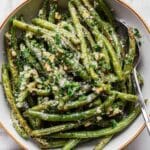 Keywords: oven roasted green beans, roasted green beans with parmesan, easy vegetable side dish, 30-minute dinner side, healthy green beans recipe