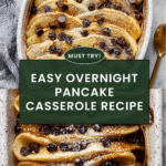 Keywords: pancake casserole, breakfast casserole, make ahead breakfast, baked pancake dish, cinnamon vanilla custard, overnight casserole