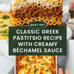 Keywords: Pastitsio, Greek pasta bake, Greek casserole, layered pasta, Greek comfort food, meat sauce, béchamel, traditional Greek recipe