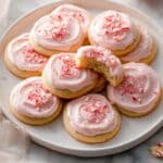- Frost the cookies: Spread buttercream on cooled cookies with a knife or spatula. Sprinkle crushed candy canes on top to finish.