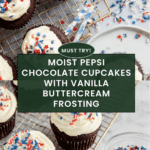 Keywords: Pepsi cupcakes, chocolate cupcakes, cola cupcakes, vanilla buttercream, festive cupcakes, easy cupcakes, American dessert