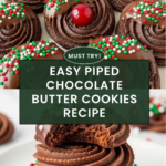 Piped Chocolate Butter Cookies are rich, buttery, and delightfully chocolatey treats that melt in your mouth. Their elegant swirled shapes and optional cherry or chocolate toppings make them perfect for gifting or special occasions.
