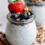 3. Serve and Enjoy: Once thickened, serve the chia pudding. For added flavor and texture, top with fresh fruit, nut butter, honey, or granola as desired.