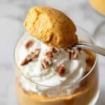 Store Pumpkin Fluff in an airtight container in the refrigerator for up to 3 days. Stir gently before serving if separation occurs. It’s best served chilled and does not freeze well as the texture may change upon thawing.