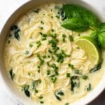 Keywords: Thai green curry soup, coconut milk soup, vermicelli noodle soup, quick Thai soup, vegetarian Thai recipe, green curry paste soup