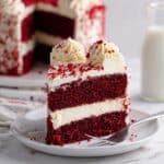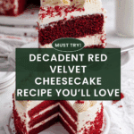 Keywords: Red Velvet Cheesecake, Red Velvet Cake, Cream Cheese Frosting, Layer Cake, Holiday Dessert, Cheesecake Recipe