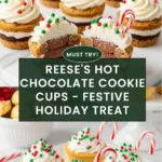 Keywords: Reese’s, hot chocolate cookie cups, holiday cookies, festive desserts, peanut butter cups, candy cane handles, sugar cookie cups