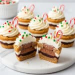 These Reese’s Hot Chocolate Cookie Cups combine soft sugar cookie cups with melted Reese’s peanut butter cups, white chocolate, festive candy cane handles, and a swirl of white icing topped with holiday sprinkles. Perfect for holiday gatherings, these adorable treat cups resemble mini hot chocolate mugs, making them a fun and delicious festive dessert.