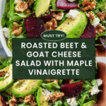 A vibrant and healthy Roasted Beet & Goat Cheese Salad featuring tender roasted beets, fresh arugula, creamy avocado, tangy goat cheese, and crunchy toasted walnuts, all tossed in a flavorful balsamic vinaigrette. Perfect as a light lunch or a sophisticated side dish.