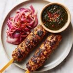 Seekh Kebab with Mint Chutney is a flavorful Indian-inspired dish featuring spiced ground lamb grilled to perfection. The smoky kebabs pair beautifully with the fresh, tangy mint chutney, making it a perfect appetizer or main course for gatherings or weeknight dinners.