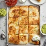 Keywords: sheet pan quesadillas, easy dinner, baked quesadilla, ground beef quesadilla, Mexican recipe