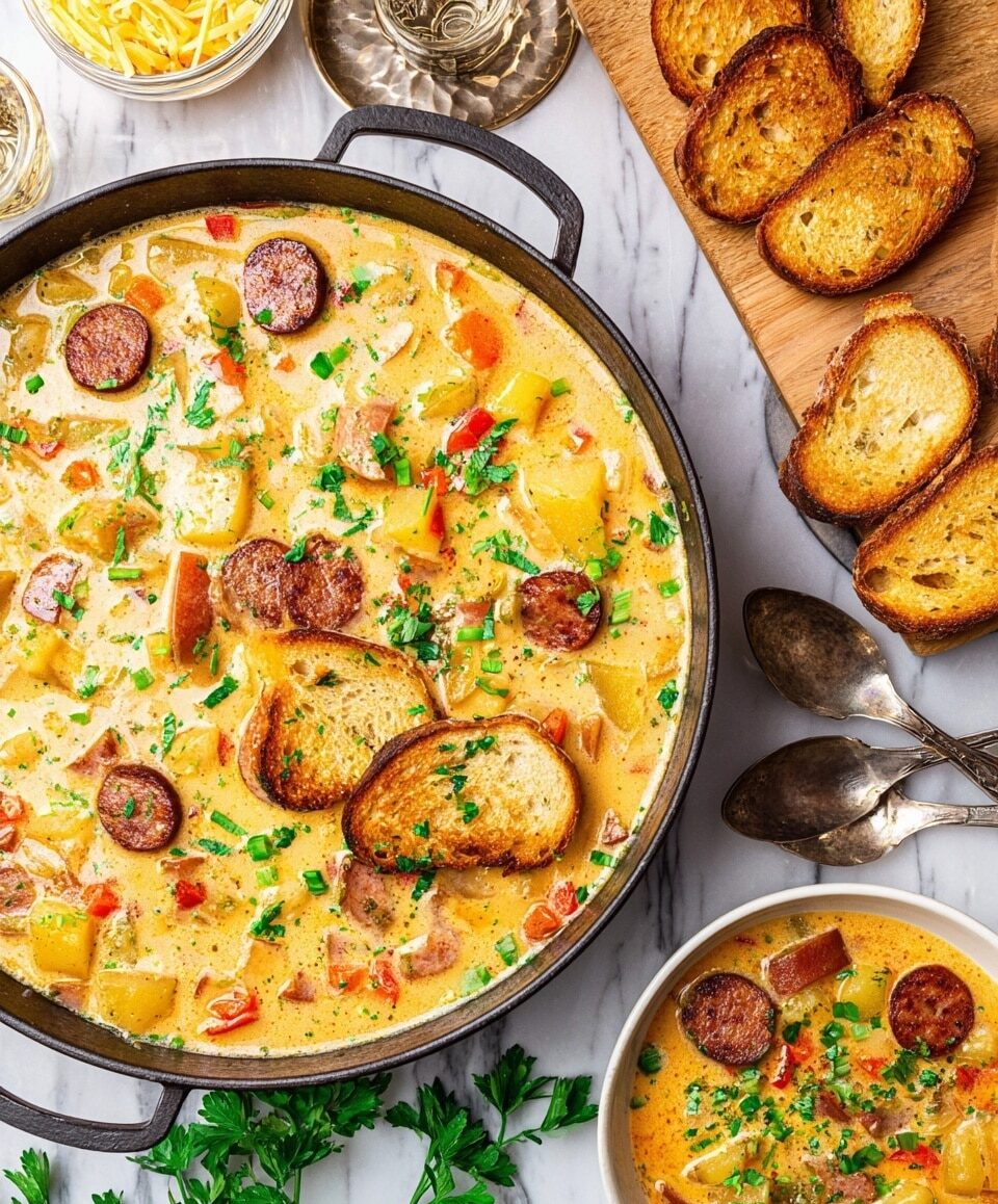 This Slow Cooker Cajun Potato Soup is a comforting and flavorful dish that brings a spicy twist to classic potato soup. Packed with andouille sausage, fresh vegetables, and a creamy base, it’s perfect for cozy dinners or easy meal prep.