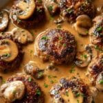 Classic smothered rissoles are tender beef patties mixed with grated vegetables and herbs, lightly browned, then simmered in a rich mushroom gravy. Served over creamy mashed potatoes, this comforting dish combines a flavorful meat patty with a velvety sauce that’s perfect for a hearty family meal.