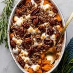 Keywords: sweet potato casserole, southern sweet potatoes, maple sweet potatoes, holiday side dish, pecan topping, roasted sweet potatoes