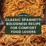 Classic Spaghetti Bolognese is a hearty Italian-inspired dish featuring perfectly cooked spaghetti tossed in a rich, savory sauce made from ground beef, onions, garlic, tomatoes, and aromatic herbs. This comforting meal is ideal for family dinners and can be prepared using simple pantry staples.