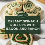 Keywords: spinach roll ups, ranch dip roll ups, cream cheese spinach wraps, easy appetizer, party snacks