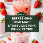 The Starbucks Pink Drink is a refreshing, fruity beverage that’s perfect for a warm day or a sweet treat. Combining creamy coconut milk with tart white cranberry strawberry juice, it’s both delicious and visually appealing with a splash of pink and strawberry toppings.