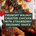 Strawberry Balsamic Walnut Chicken is a savory and slightly sweet dish featuring tender baked chicken breasts coated with a crunchy walnut and breadcrumb crust, topped with a vibrant strawberry balsamic sauce. This elegant yet easy-to-make recipe combines the rich flavors of toasted walnuts and the tangy sweetness of strawberries and balsamic vinegar, creating a delightful contrast that will impress family and guests alike.