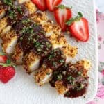 - Season and Serve: Taste the sauce and add salt and pepper as needed. Spoon the warm strawberry balsamic sauce over the baked walnut-crusted chicken breasts and serve immediately.