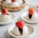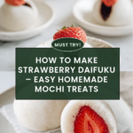 Strawberry Daifuku is a delightful Japanese treat featuring a juicy strawberry wrapped in sweet white bean paste and soft mochi. This chewy, sweet snack combines fresh fruit with a traditional rice cake for a perfect balance of flavors and textures.
